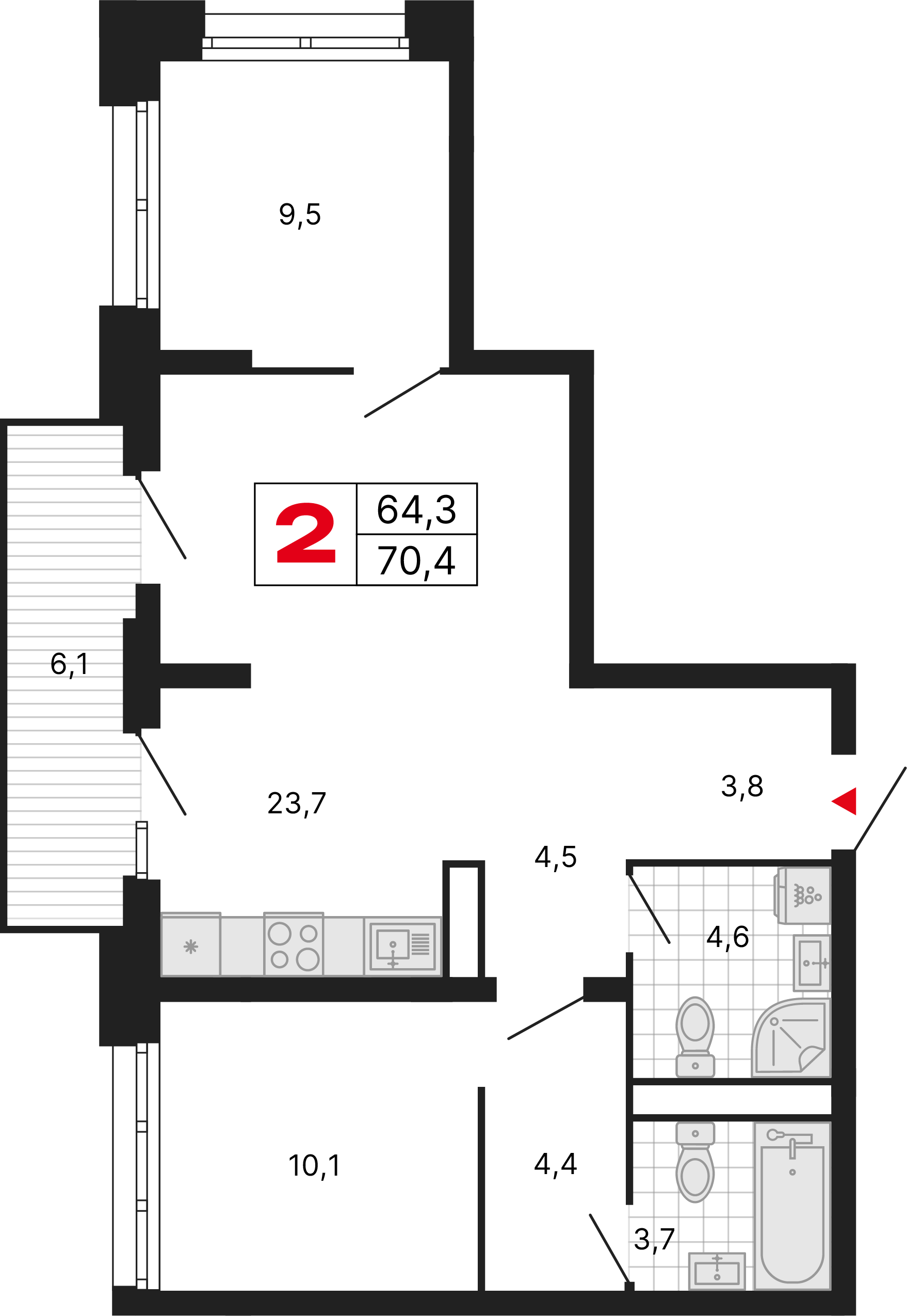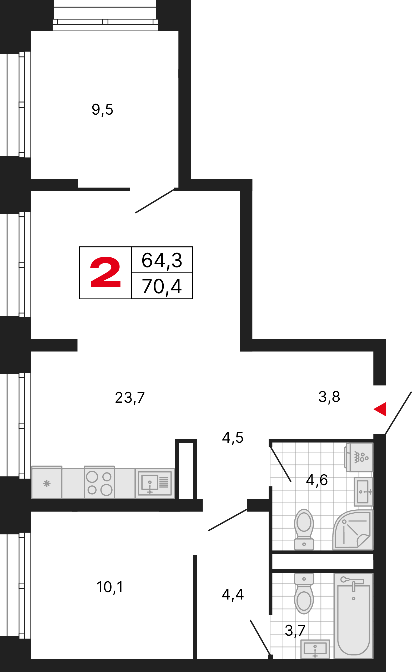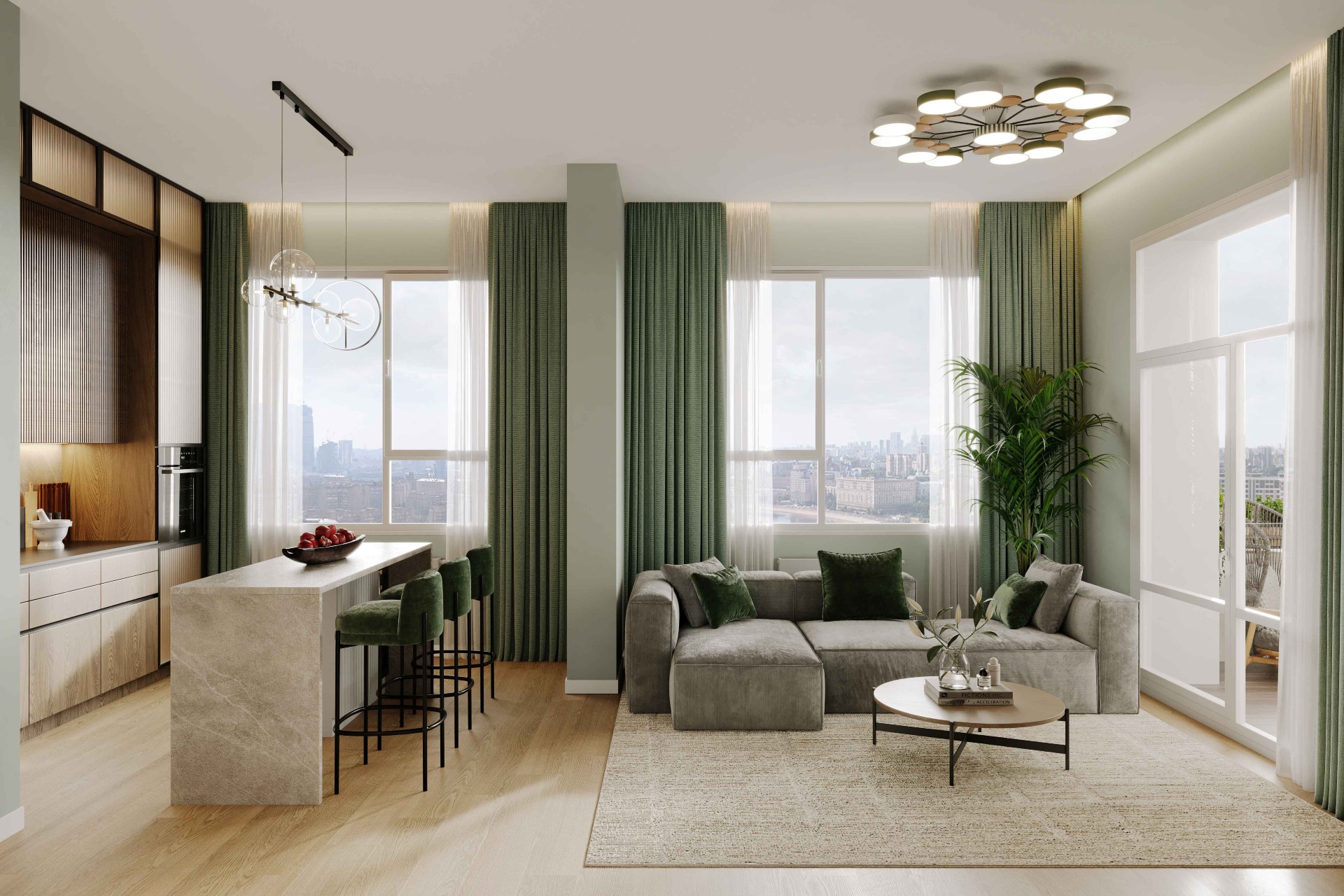 Просторные видовые квартиры с двумя балконами обеспечивают великолепные виды, свежий воздух и ощущение свободы. Отличное решение для ценителей свободы и уюта.
