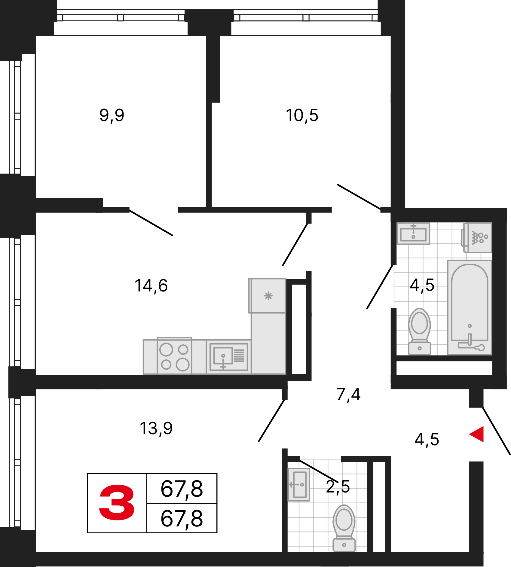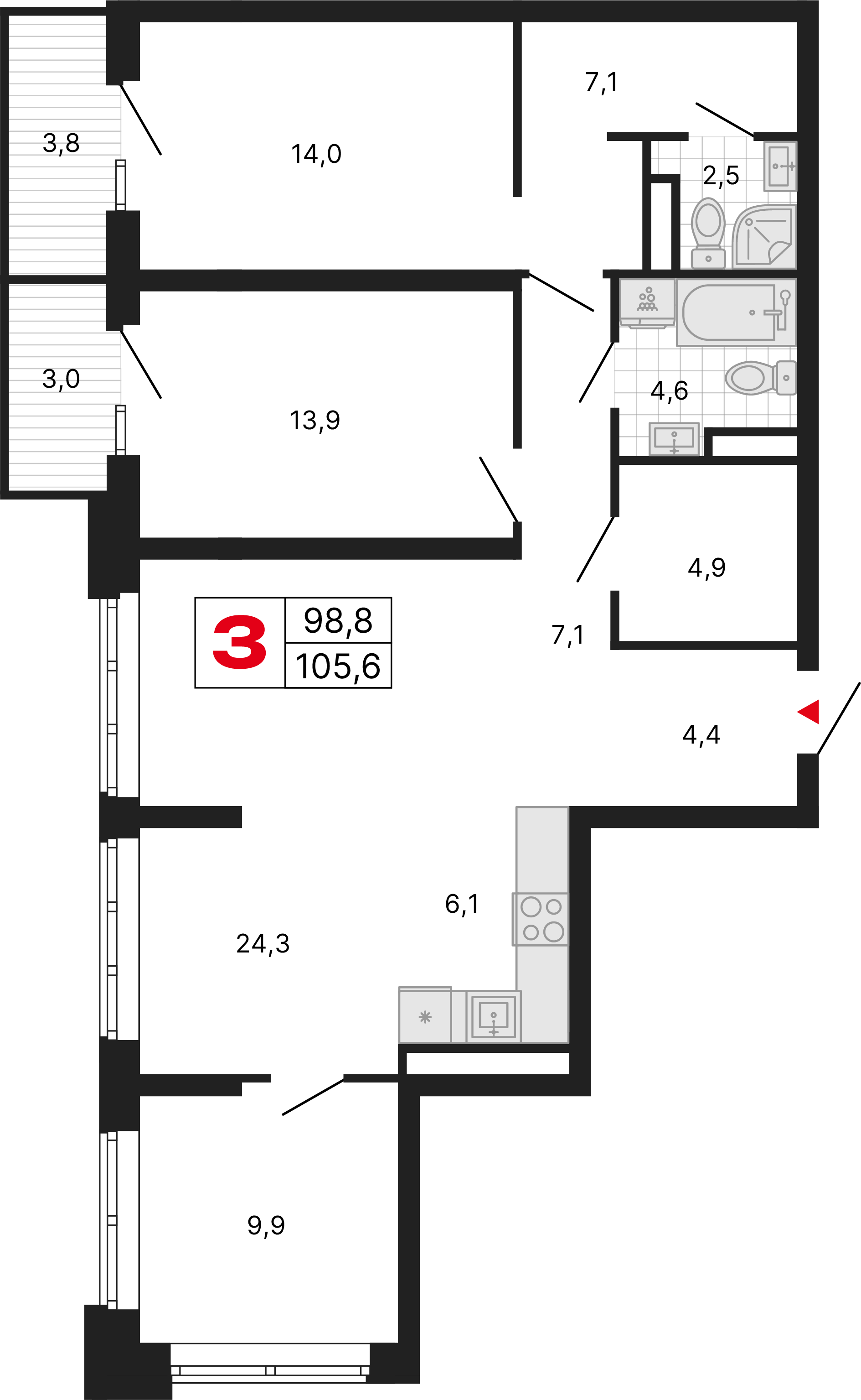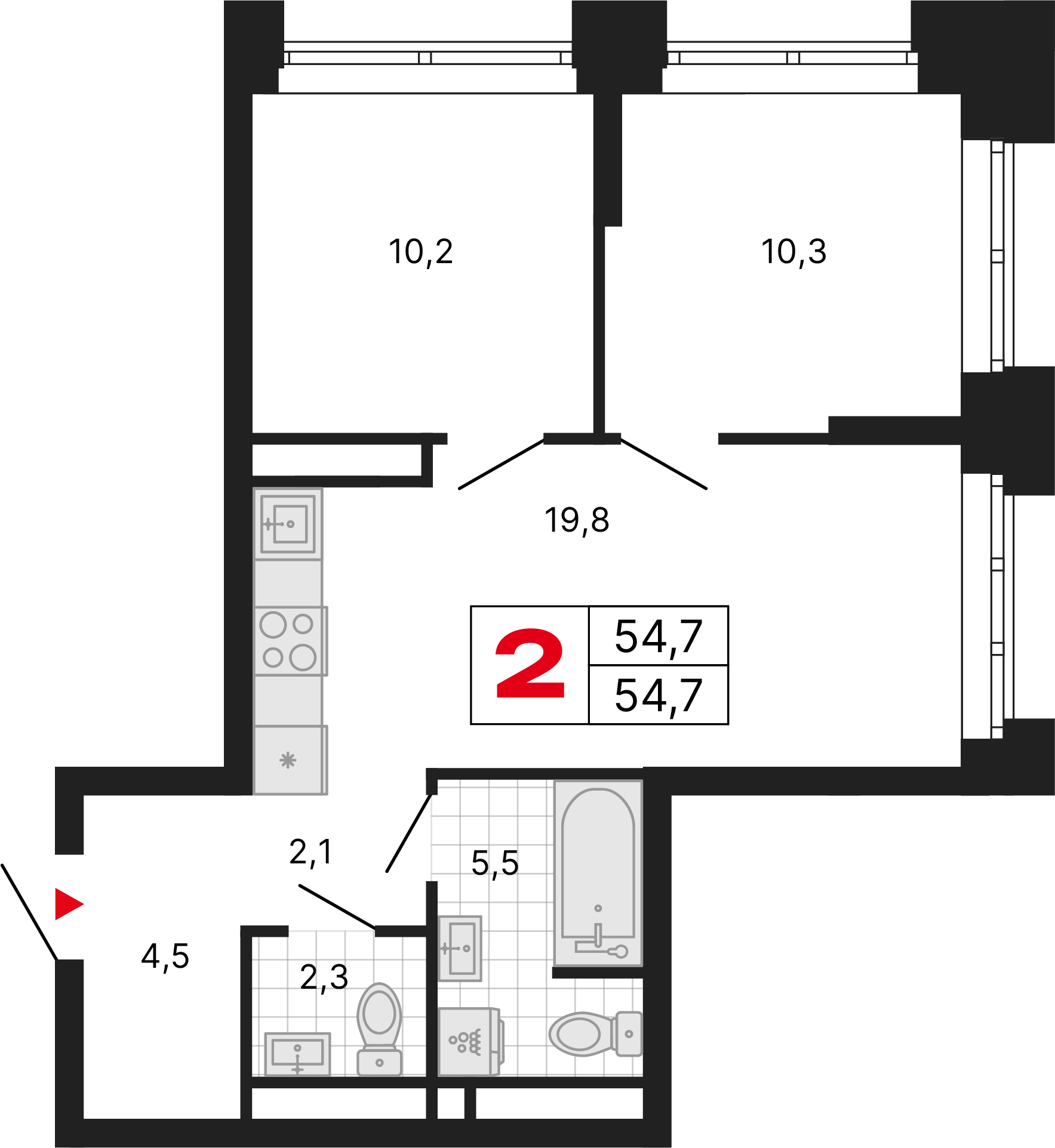 Просторные видовые квартиры с двумя балконами обеспечивают великолепные виды, свежий воздух и ощущение свободы. Отличное решение для ценителей свободы и уюта.