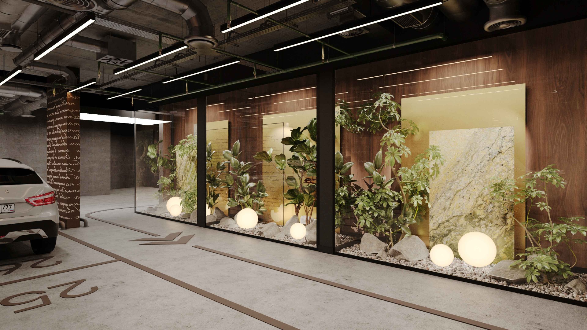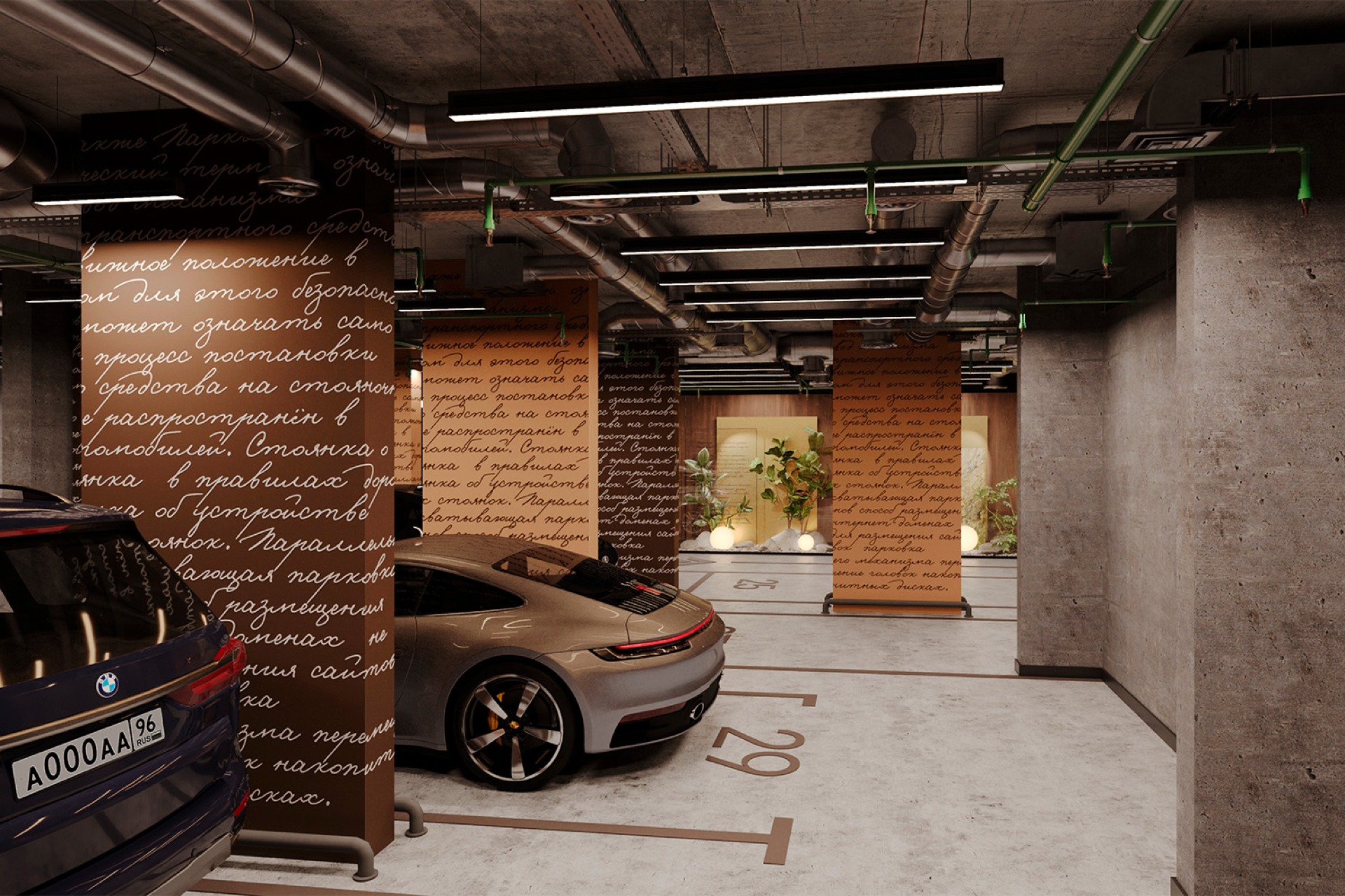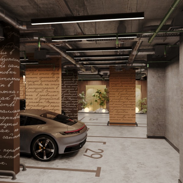Подземный паркинг с предусмотренной возможностью установки зарядных станций и открытая гостевая парковка.
