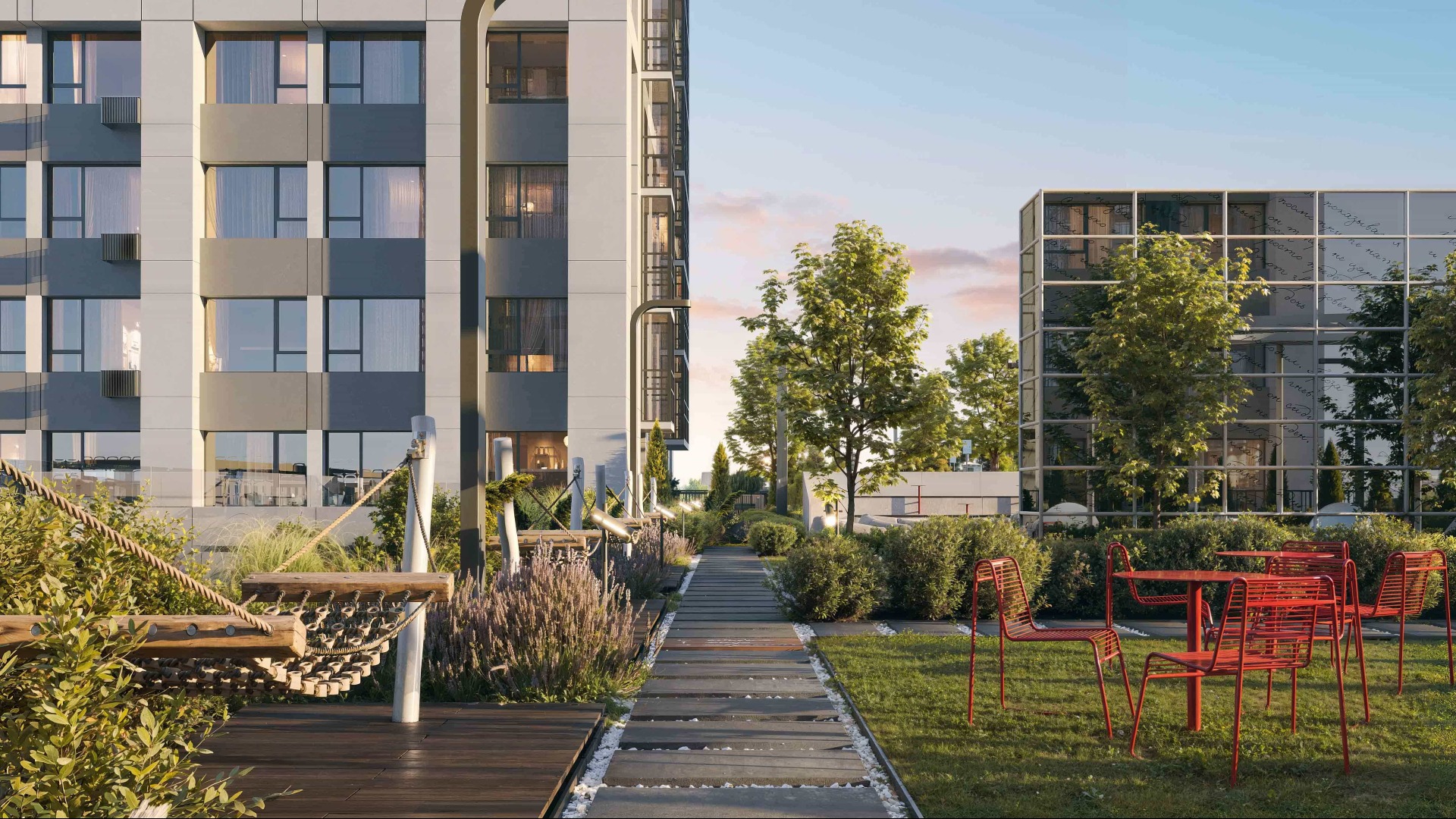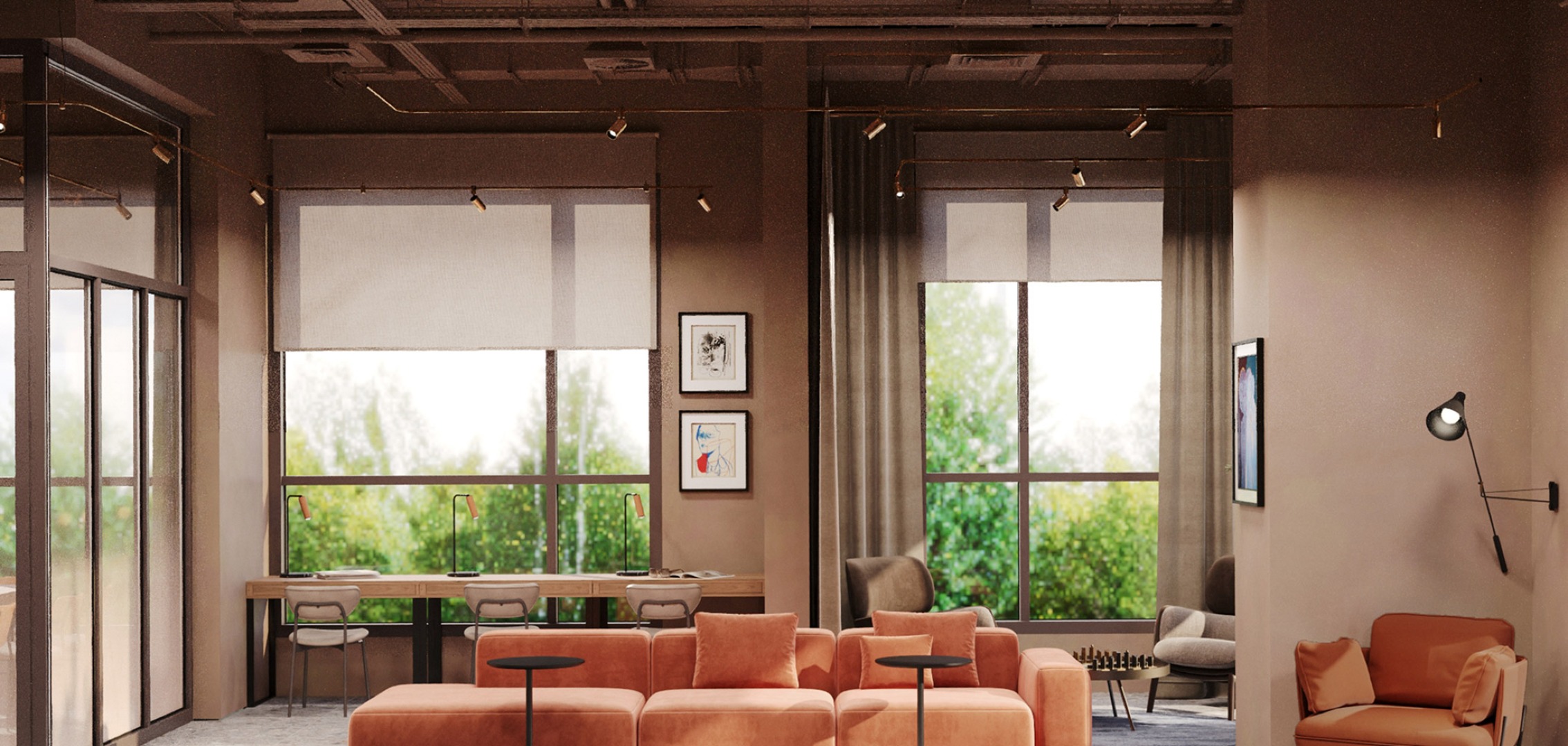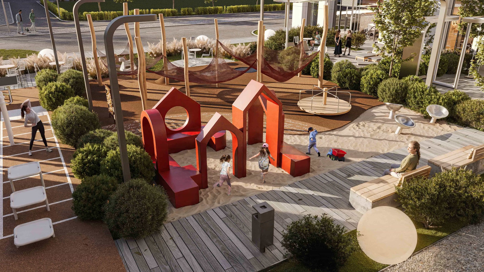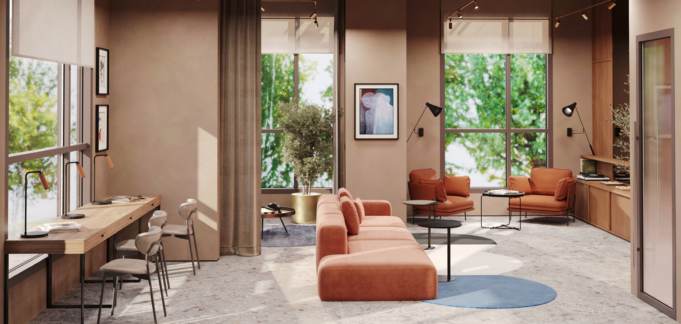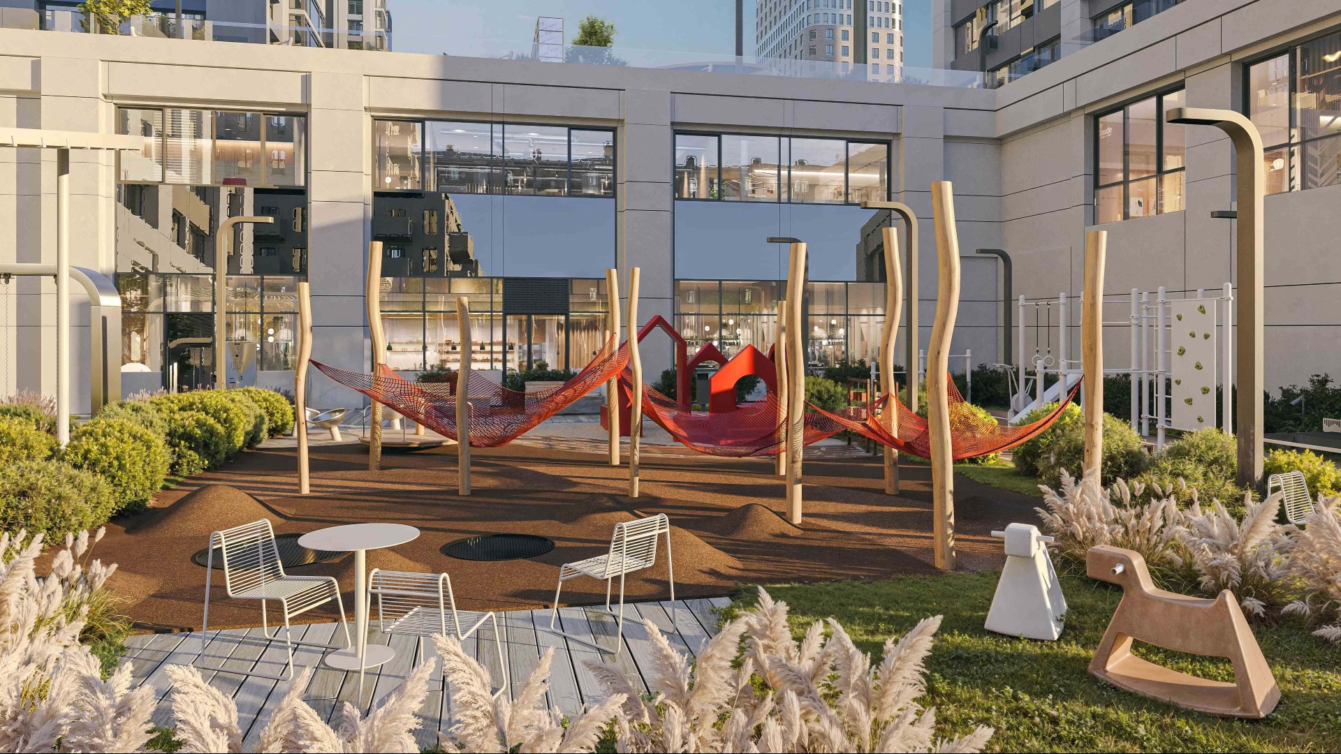 На территории комплекса для жителей будут работать фитнес-зона, коворкинг, детская комната и зона для занятий.